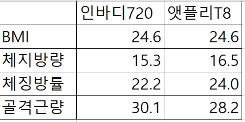 인바디720(1,800만원) vs 앳플리T8(2.5만원) 비교...