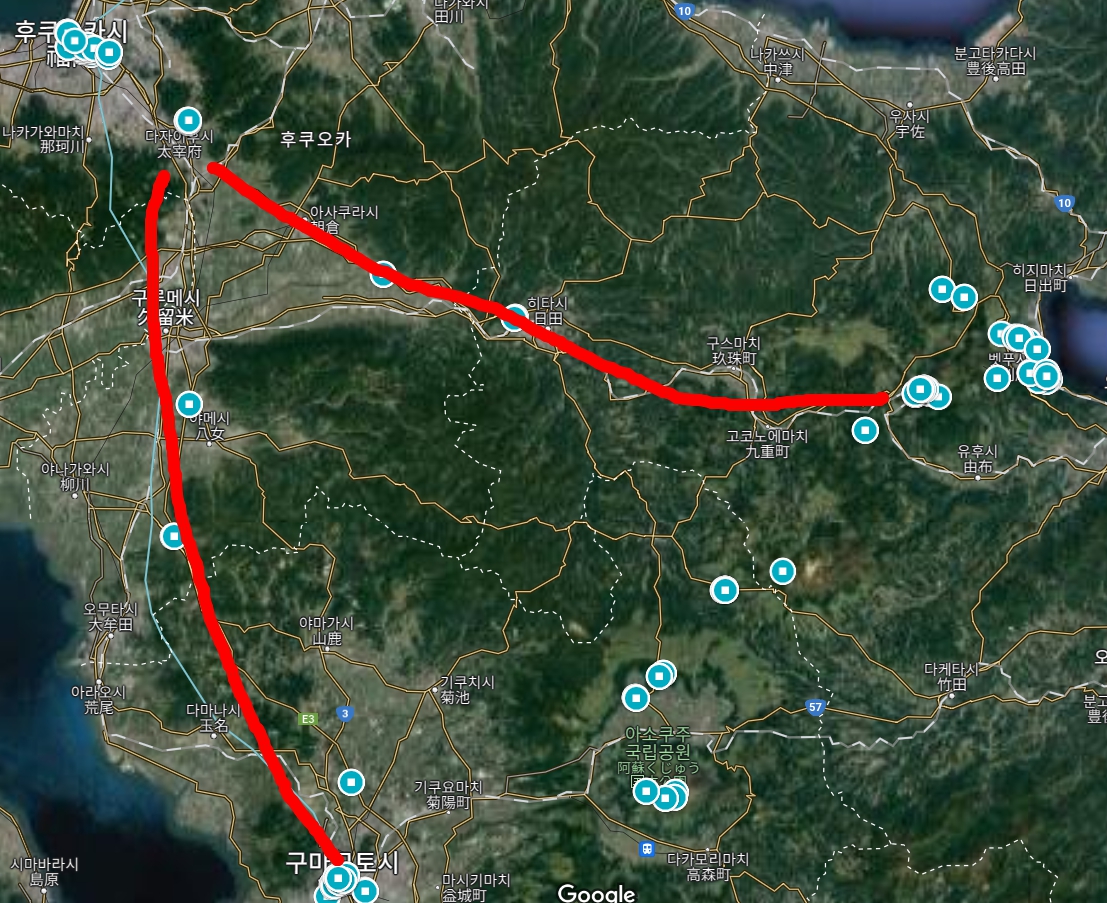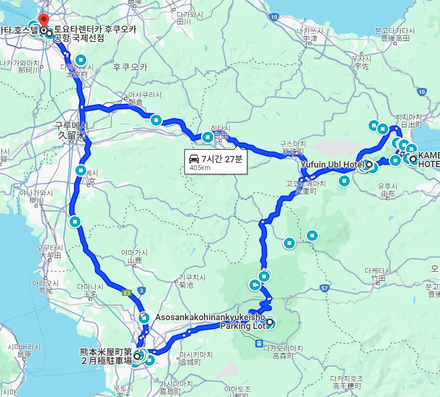 3일 - 4인가족 4박5일 일정, 렌트카 지도, 숙소호텔(일본 규슈 후쿠오카, 유후인, 벳푸, 아소산, 구