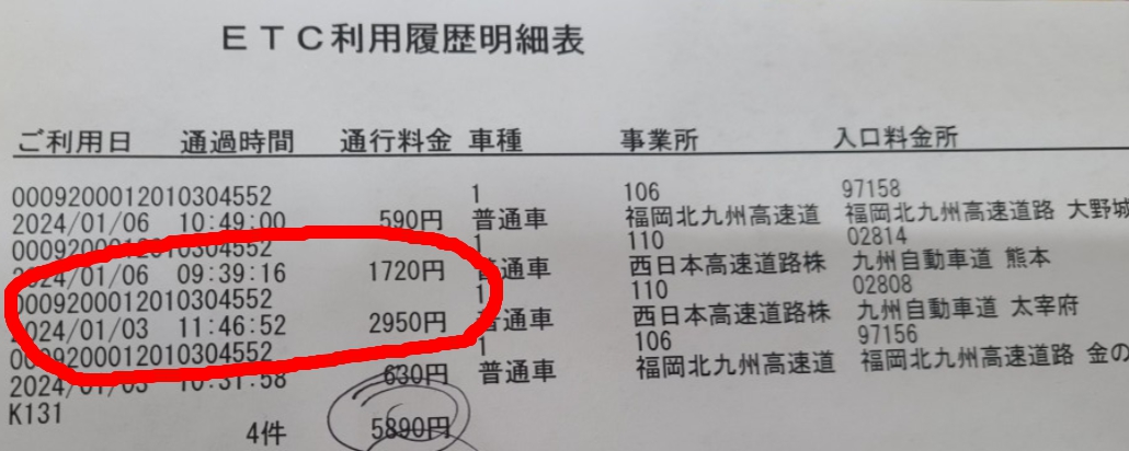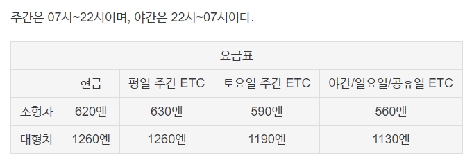 630엔 나온게..평일날.. 다자이후에서 안타고...도시고속도로 탄게..630엔 나온거임..